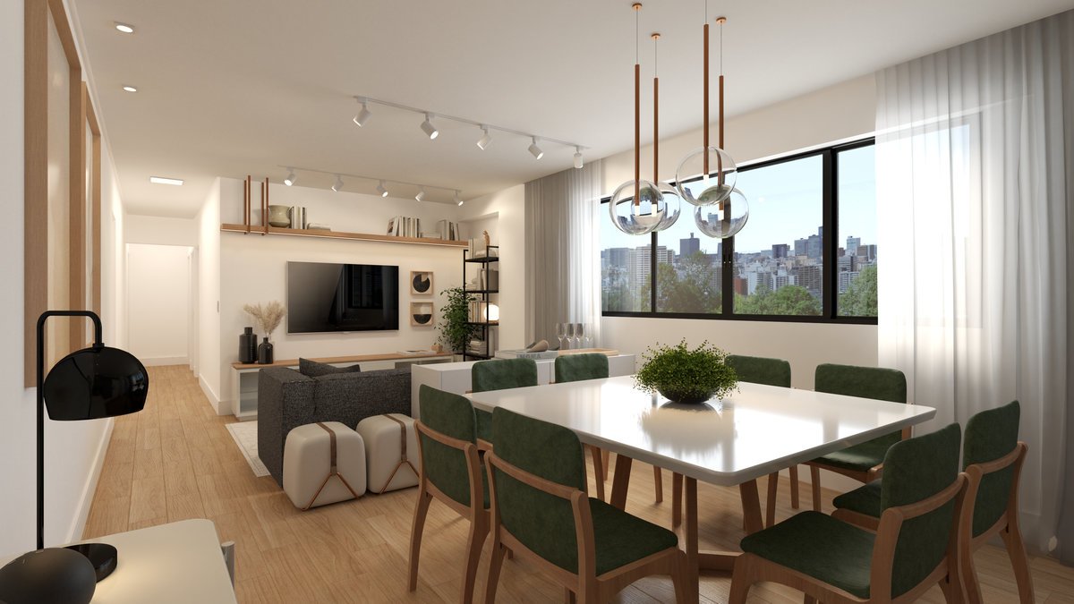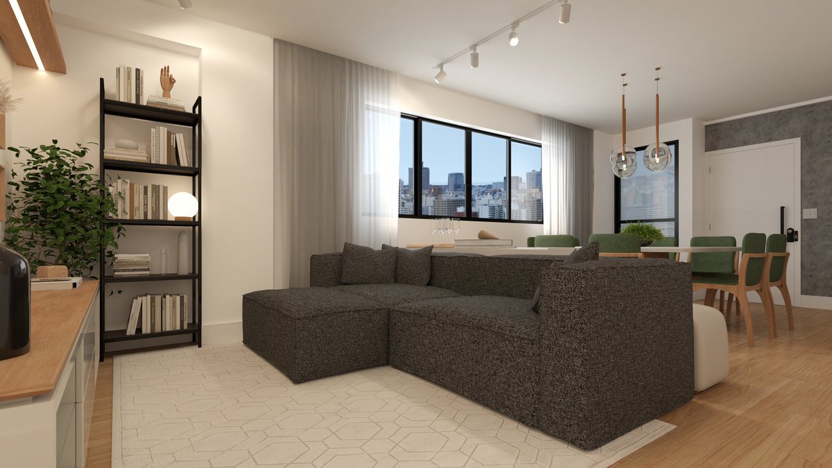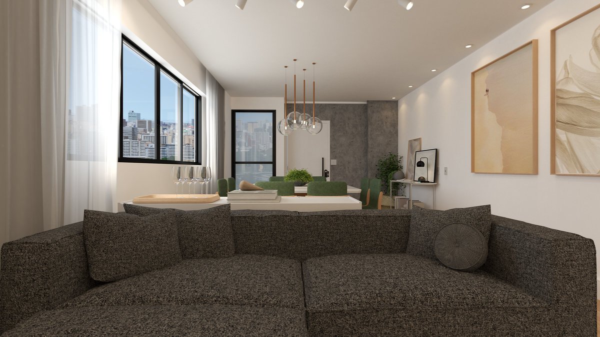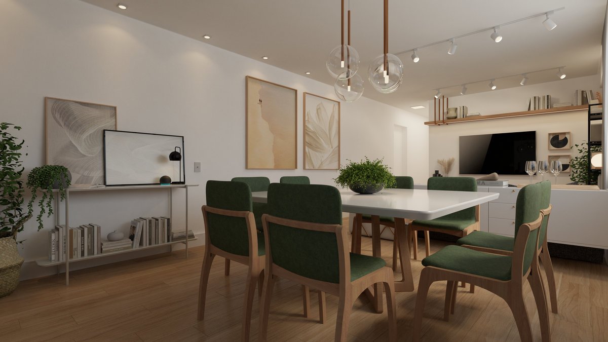 Este projeto integra sala de estar e jantar em um ambiente contemporâneo, acolhedor e elegante.